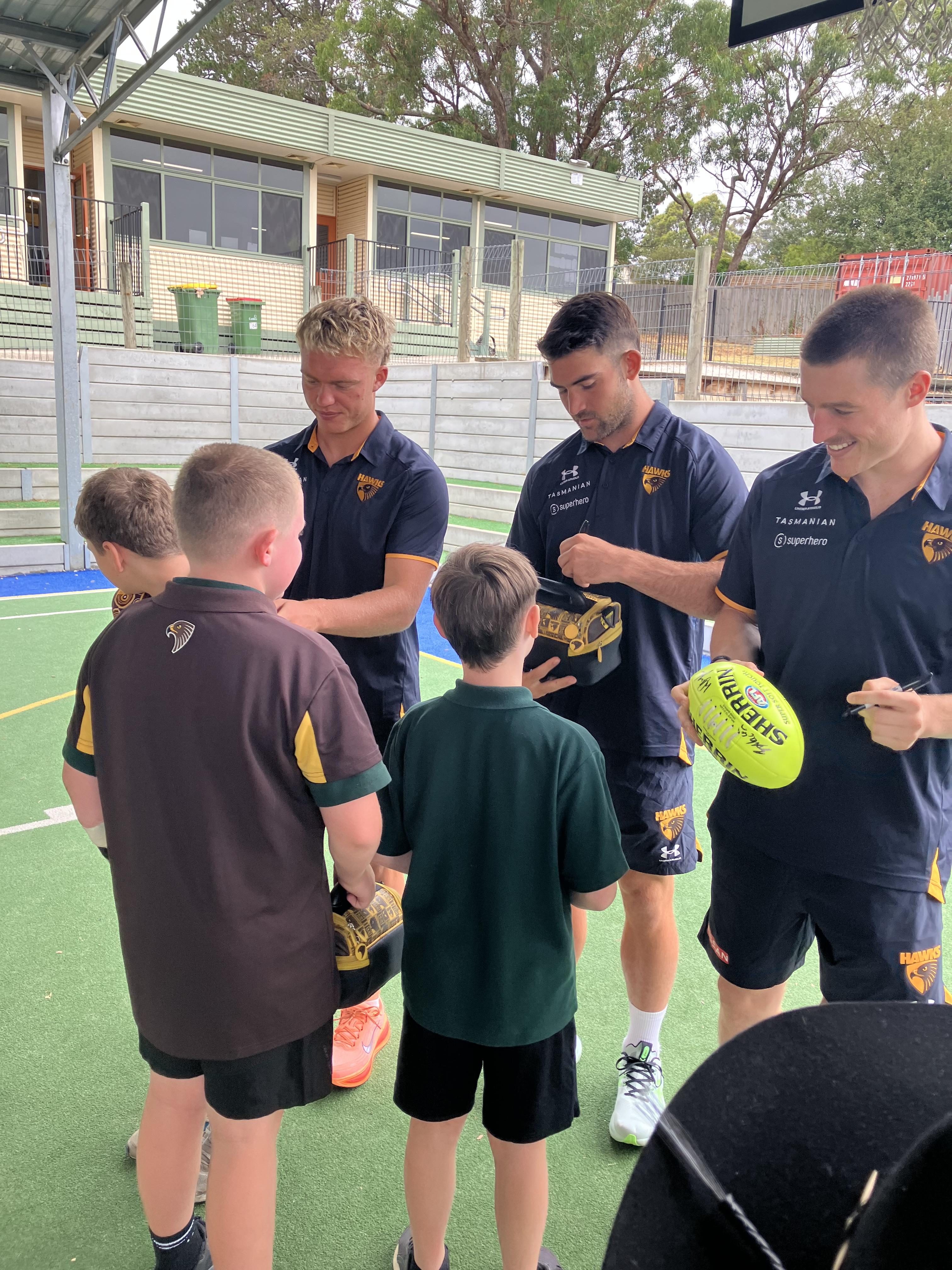It was an exciting morning here on Monday with some special visitors in attendance from the Hawthorn Football Club. The students were captivated, asking questions and hearing about the players' journey to the AFL, what it's like to be a professional footballer and some of the rivalries with other clubs and players. We are so grateful for the players taking the time to come and meet with our students, it was a particularly special day for a few mad Hawthorn supporters!